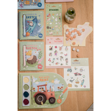 Mit diesem lustigen Little Farm Malbuch kannst du die schönsten Bilder malen. Male die Zeichnungen auf dem Bauernhof aus oder gestalte dein eigenes Kunstwerk auf einer der leeren Seiten. Dieses Buch ist deine Leinwand! Das Malbuch hat Ausmalseiten zum Ausmalen und leere, dicke Papierbögen. Es wird mit einem Pinsel und Wasserfarben in 4 Farben geliefert. Dein Kind wird nicht nur Spaß daran haben, die Farben zu entdecken und wie sie sich vermischen, sondern das Malen fördert auch die Kreativität, die Hand-Augen-Koordination und die Feinmotorik.