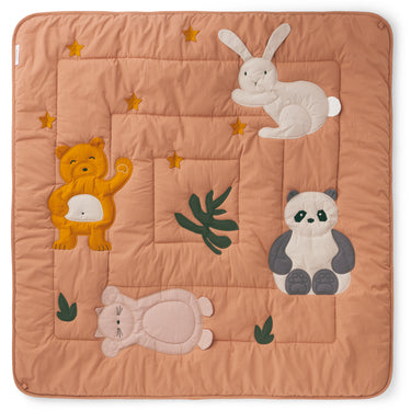Entwickelt, um die motorischen Sinne und die Neugier deines Kindes durch endlose Stunden des Spielens zu fördern. Die Decke ist weich und dick gepolstert, ideal als Spielunterlage für das Wohn- oder Kinderzimmer. Durch die Applikationen und Knisterfolie bietet die Decke eine wunderschöne Basis zum Entdecken, Spielen und ersten Roll- und Krabbelversuchen.