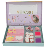 Für tierisch viel Spaß beim Briefeschreiben: Das Love Letter Set von TOPModel in niedlichem Design mit Äffchen, Früchten und Sommer-Icons beinhaltet 10 Briefblätter, 10 Briefumschläge, 1 Bogen mit silbernen Stickern, 1 Abroller mit 4 Tapes, 1 Herz-Ausstanzer, 2 Stempelkissen, 7 Stempel und 1 Bastelanleitung.