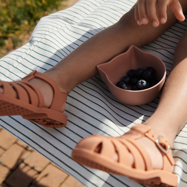Die Bre Sandalen sind flexible Strandsandalen für Kinder, die frei von schädlichen Chemikalien sind. Perfekt für den Strand, da das PVC kein Wasser aufnimmt und dein Kleines niedliche Panda-förmige Fußabdrücke auf jeder weichen Oberfläche hinterlässt.