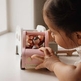 Auf zu einer Traumreise! Entdecke die abenteuerliche Welt des Campings mit dem bezaubernden rosa Auto und dem niedlich gestaltetem Wohnwagen von Little Dutch. Stell die Strandliege auf und pack die Koffer aus, damit die drei Holzfiguren die Umgebung erkunden können. Die leichtgängigen Räder ermöglichen es dir, mühelos über den Boden zu gleiten und immer wieder neue Übernachtungsplätze zu finden. Sowohl die Tür als auch das Dach des Wohnwagens lassen sich öffnen, und die Puppen passen perfekt zum Puppenhaus sowie zu anderen Spielsets von Little Dutch.