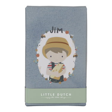 Niedliche Little Dutch Puppe holländischer Bauer Jim. Die Kuschelpuppe Jim von Little Dutch trägt einen niedlichen Hut und eine blaue Latzhose. In seinen Händen hält Jim einen Käse. Die Little Dutch Stoffpuppe kommt in einer schönen Box.
