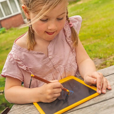 Perfekter Begleiter für unterwegs. Maltafel mit Löschfunktion