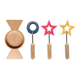 - Drei Sticks zur Auswahl: pinker Stern, gelber Stern und blauer Donut-Ring