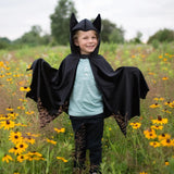 Bereit Superhelden-Fans! Dieser Fledermaus-Umhang mit Kapuze hat große Fledermausohren an der Kapuze und ein tolles Fledermaus-Emblem auf der Rückseite des Umhangs. Der Umhang besteht aus weichem Veloursstoff und ist wie echte Fledermausflügel mit skalpiertem Rand geschnitten. Mit diesem in Kanada hergestellten Umhang bist du bereit für viele Superhelden-Abenteuer.