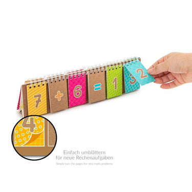 Werde zum Rechenmeister! Egal ob addieren, subtrahieren, multiplizieren oder dividieren - mit diesem Lernkarten-Block zum Aufstellen aus stabilen Karton mit Spiralbindung können Kinder die Grundrechenarten spielend leicht lernen und fleißig üben. Durch das Umblättern der Kärtchen ergeben sich immer wieder neue Rechenaufgaben, die es zu lösen gilt. Fertig? Dann einfach mit dem praktischen Gummibandverschluss verschließen und einpacken.