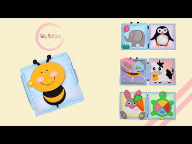 Das Mini Quiet Book "Kleine Biene" ist perfekt für Kinder ab 6 Monaten. Dieses handgefertigte Buch aus kinderfreundlichen, OEKO-TEX® zertifizierten Materialien bietet sicheren Spielspaß und fördert die Entwicklung des Kindes.