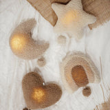 Die 3in1 Mobiles von Mrs. Ertha sind aus Bio-Baumwolle. Das interne Licht hat drei Variationen von Farbtönen (weiß, beige und warmes orange) mit unterschiedlichen Intensitäten und kann über USB aufgeladen werden. Mit aufziehbarer Spieluhr. Jede Form hat eine andere Melodie