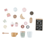 Die Kaffee-Ecke aus Holz verfügt über einen Kaffee- und Teezubereiter, Stauraum für alle Tassen und Utensilien und einen Schrank, in dem alle Köstlichkeiten ausgestellt werden können. Die vielen Zubehörteile wie ein Croissant, ein Donut, ein Teebeutel und Kaffeepads sorgen für stundenlangen Spielspaß. Dieses Kaffeeset regt zum Rollenspiel an und bringt den Mini-Barista in Ihrem Kind zum Vorschein. Kombinieren Sie es mit dem Holztoaster, um ein komplettes Frühstückserlebnis zu erhalten.