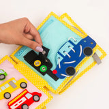 6 Herausnehmbare Fahrzeuge, 1 Haus, 3 Straßenschilder, 2 Ladungen Erde, 1 Straßenteil, 1 Schnur - 1 Tasche Für Quiet Book