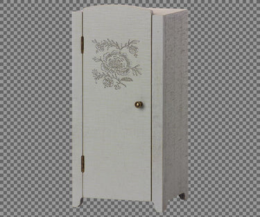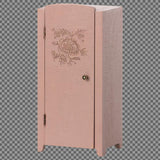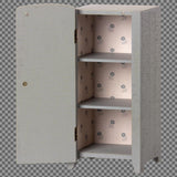 Wundervoller detailreicher Schrank aus Holz mit beweglicher Tür und Metallgriff.