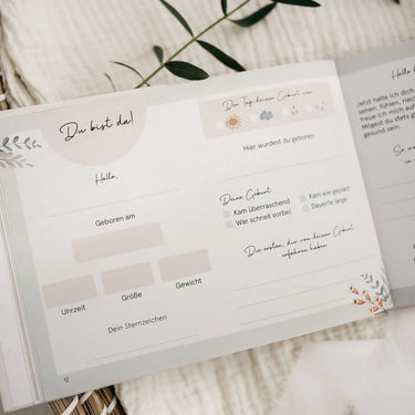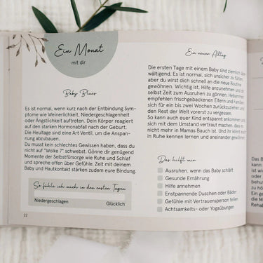 - Detailreiches Babytagebuch für die ersten 12 Monate