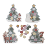 Weihnachtliches Familienspiel von Little Dutch. Jeder Spieler erhält eine Weihnachtsbaumkarte mit fünf bunten Kugeln und einem Stern. Abwechselnd wird gewürfelt, um die passende Farbe zur Karte hinzuzufügen. Sobald der Weihnachtsbaum zu Ende geschmückt ist, gewinnst du.