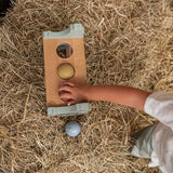 Tik tik tik! Lass das Huhn ein Ei legen, indem du mit dem Hammer die drei Bälle in die Holz-Hammerbank schlägst. Diese Aktivität fördert die Feinmotorik deines Kindes. Hast du alle Bälle eingehämmert? Leg sie einfach zurück und starte von vorne. Das sorgt für stundenlangen Spielspaß!