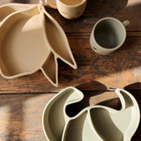 Dieses entzückend Set besteht aus einer niedlichen Schüssel und einem Becher aus 100 % Silikon. Die Schüssel ist in Zitronen- oder Dinoform. Außerdem haben die Schüsseln einen Saugnapf, der sich aufm Tisch festsaugt, sodass sie auf dem Tisch stabil stehen bleiben. Das Set ist bruchsicher und spülmaschinenfest.