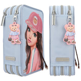 Die süße blaue TOPModel-Federtasche mit großem Model-Print, geflochtenen Zöpfen und einem Teddy-Anhänger ist nicht nur stylisch, sondern auch vollgepackt mit allem, was kleine Künstler für die Schule brauchen!