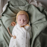 Die aus Bio-Baumwolle gewebte Strickdecke ist warm, atmungsaktiv und unglaublich weich. Diese Decke hat die perfekte Größe für Kinderwagen und Kinderbetten und ist eine tolle Ergänzung für das Kinderzimmer.