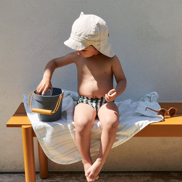 Niedlicher und praktischer Sonnenhut für Kinder mit Nackenschutz für den ultimativen Schutz. Der Gorm Sonnenhut besteht aus 100 % Bio-Baumwolle und sorgt für ein leichtes, angenehmes und atmungsaktives Tragegefühl.