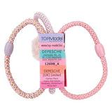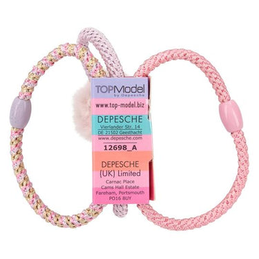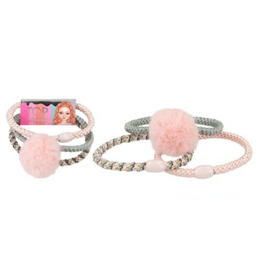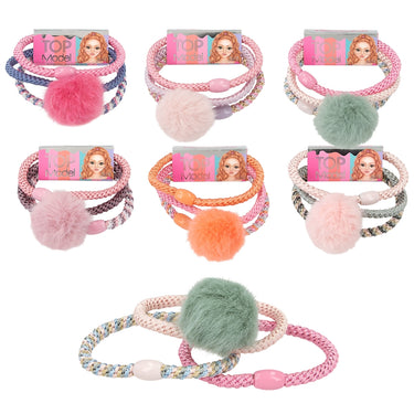 Fürs Haar oder stylish ums Handgelenk: die TOPModel-Haargummis mit Zierperle. Jedes Set besteht aus drei farblich abgestimmten Haargummis (1 einfarbiges Haargummi, 1 einfarbiges Haargummi mit flauschigem Pompom, 1 mehrfarbiges Haargummi); 6 verschiedene Sets erhältlich.