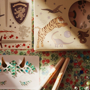 Entfessele die Kreativität kleiner Stylist mit dem kreativen Set von Konges Sløjd! Mit Nagel- und Ohrstickern, funkelnden Schmucksteinchen, Tattoostiften und Klebetattoos bietet das Set alles, was Kinder brauchen, um ihren eigenen Style zu kreieren. Perfekt für fantasievolle Spielstunden und kreativen Spaß – geprüft und sicher.