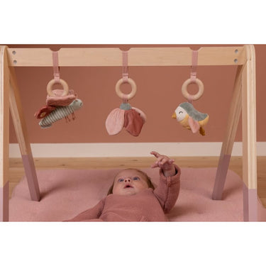 Hoch mit den kleinen Armen! Dieses niedliche Baby Gym von Little Dutch ist perfekt für neugierige Babys. Mit diesem hölzernen Spieltrapez wird dein Baby viel Spaß haben. Es gibt drei verschiedene Aktivitätsspielzeuge, die für Unterhaltung sorgen: ein fröhlicher kleiner Vogel, ein quietschendes Schmetterlings und eine bunte Blume. Das Spieltrapez fördert die Hand-Augen-Koordination, verbessert die Motorik und stimuliert die Sinne jedes Mal, wenn dein Kleines nach einem der Spielzeuge greift.