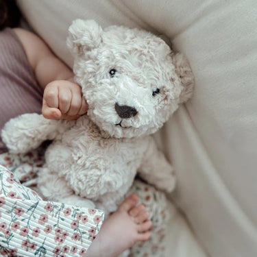 Der niedliche Bär Lou von Flow Amsterdam ist ein treuer Begleiter während Dein Baby schläft und ein absoluter Alltagshelfer für Eltern. Die mitgelieferte Spieluhr spielt beruhigende Töne wie Herzschlag und Wasserfall sowie eine beruhigende Melodie.