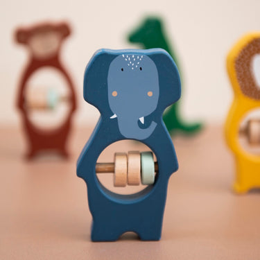 Niedliche Holzrassel! Die lustigen Perlen im Bauch des Tieres sorgen für viel Spaß. Diese Rassel besteht aus hochwertigem Buchenholz, das zu 100 % FSC®-zertifiziert ist. Alle Farben auf diesem Produkt sind wasserbasiert. Wähle aus einer Vielzahl von verschiedenen Tiermotiven.