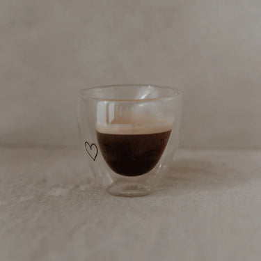 Das perfekt Glas für deinen Espresso oder Kaffee! Entdecke das Eulenschnitt Doppelwandiges Glas in Herzform mit Herz für Kaffeeliebhaber. Durch das wundervolle Doppelwanddesign, sieht es so aus, als würde dein Getränk schweben.