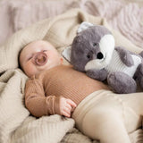 Der niedliche Fuchs Robin von Flow Amsterdam ist ein treuer Begleiter während Dein Baby schläft und ein absoluter Alltagshelfer für Eltern. Die mitgelieferte Spieluhr spielt beruhigende Töne wie Herzschlag und Wasserfall sowie eine beruhigende Melodie.