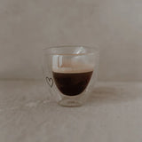 Das perfekt Glas für deinen Espresso oder Kaffee! Entdecke das Eulenschnitt Doppelwandiges Glas in Herzform mit Herz für Kaffeeliebhaber. Durch das wundervolle Doppelwanddesign, sieht es so aus, als würde dein Getränk schweben.
