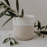 Wunderschöner Eulenschnitt Becher Mama. Produziert in Portugal in Handarbeit. Das minimalistische Design und die natürlichen Farbnuancen werden von einem wunderschönen Ciao Kakao als Blindprägung abgerundet.