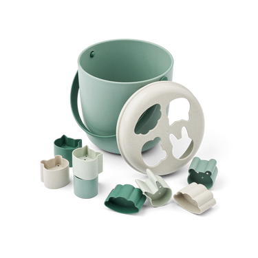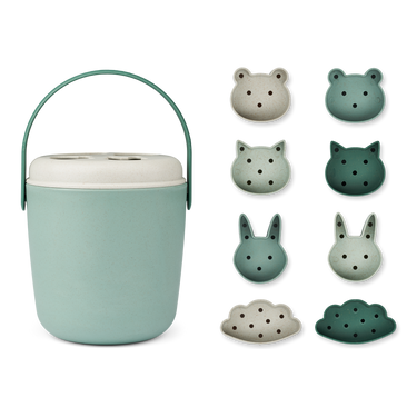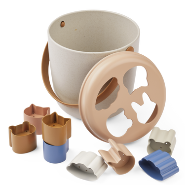 Der Jorn Eimer von Liewood kann sowohl als Puzzlebox oder als Eimer verwendet werden. Nimm ihn mit an den Strand oder benutze ihn drinnen. Die Förmchen haben Löcher, sodass das Wasser hindurchlaufen kann.