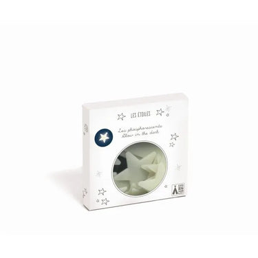 Sternenhimmel mit vielen phosphoreszierenden Sternen in 3 unterschiedlichen Größen zum Aufkleben an Wände und Zimmerdecke. Die Sterne laden sich bei Tageslicht auf und leuchten im Dunkeln, damit die Kinder friedlich von Sternen umgeben einschlafen können.