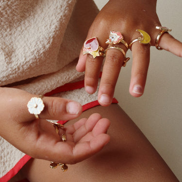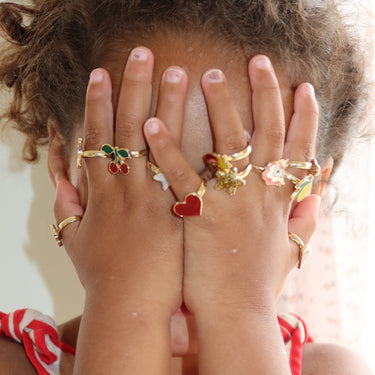 • Verstellbare Ringe mit dekorativen Motiven, passend für kleine Finger.