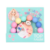 Cool und clever: Die Kugeln der bunten TOPModel-Armbänder sehen nicht nur total schön aus, sondern sind auch Radierer. 3 verschiedene Farb-Designs erhältlich, jeweils aufgefädelt auf einem elastischen, durchsichtigen Kunststoffband und mit einem goldfarbenen Anhänger mit Happy Face.