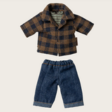 Maileg Papa Maus in kariertem Hemd und Jeanshose. Er passt zu der Größe „Maus“ für Möbel und Accessoires. Kaufe weitere Kleidung separat. Kleidung in der Größe Mama/Papa passt dieser Maus.