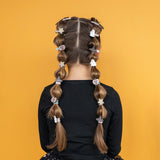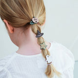 Kürbisse, Hexenhüte, Geister und Sterne, süße Haargummis für Halloween.