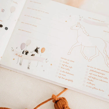 Das liebevoll gestaltete Freundebuch für Pferdefans bietet originelle Fragen, eine spannende Abenteuer-Bucket-List und kreative Malbereiche, in denen Kinder ihr Wunschpferd gestalten können. Mit 64 Seiten für 27 Freunde und Platz für vier Erzieher/innen oder Lehrer/innen ist es das ideale Geschenk für Geburtstag, Einschulung oder Weihnachten.