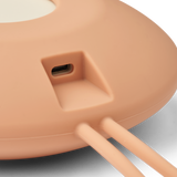 Tragbare Spieluhr von Liewood. Mit beruhigenden Klängen wie Pink Noise, Vogelgesang und brechenden Wellen. Die Musik Box ist ideal für unterwegs, sie kann ganz leicht an dem Kinderwagen befestigt werden und ist super praktisch für Reisen. Keine Batterien, sondern aufladbar. Kommt mit einem USB-C Ladegerät.