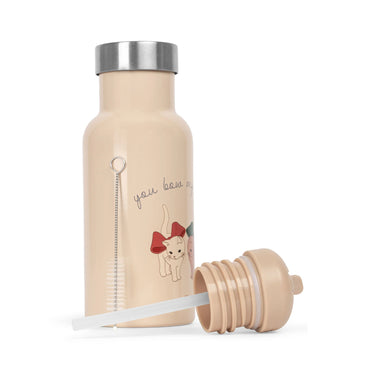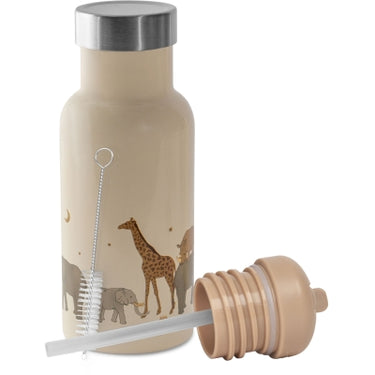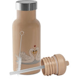 Die Trinkflasche aus Edelstahl ist der perfekte Begleiter für Ausflüge. Sie hat zwei Verschlüsse - einen Edelstahldeckel und einen Deckel mit Strohhalm. Sie ist praktisch für Unterwegs, da kalte Getränke gekühlt und warme gewärmt werden.