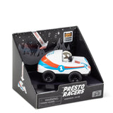 Und schon ist es soweit! Dieser turboschnelle, batterielose Retro-Mini-Rennwagen ist startklar! Kinder werden mit diesen flinken kleinen Druckguss-Rennwagen jede Menge Spaß haben. Der Rennmechanismus wird durch einfaches Herunterdrücken aktiviert, und schon geht es los! In drei lustigen Sammlerdesigns.