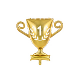 - Glänzender Folienballon Pokal in Gold-Metallic mit weißem Aufdruck