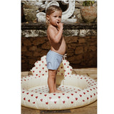 Aufblasbarer Pool aus langlebigem, phthalatfreiem PVC. Das Design ist zeitlos und der Muschelsprinkler bringt nicht nur Abkühlung, sondern auch jede Menge Spaß.