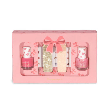 Das wunderschöne Set von Konges Slojd enthält zwei leuchtende Peel Off Nagellack Farben, eine einfarbig und eine mit Glitzer, Nagelsticker, für lustige Styles, und eine glitzernde Nagelfeile, die speziell für kleine Hände entwickelt wurde.