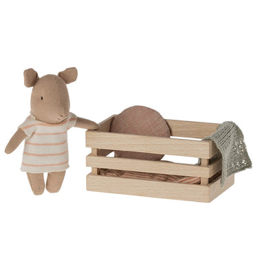 Ein perfektes Spielset, um jede Geschichte zu beginnen. Dieses kleine Babyschweinchen schläft fest in seiner Holzkiste mit weicher Bettwäsche. Füge die größeren Schweine hinzu, um das Spiel zu verlängern.