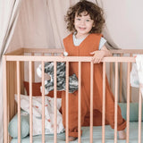 Der Schlafoverall "Jumper" von Julius Zöllner wurde vor allem für aktive Kinder konzipiert. Der Overall aus weichem Baumwollmusselin ist besonders anschmiegsam und sanft zur Haut. Der robuste, mittlere Reißverschluss erleichtert das An- und Ausziehen und ist ebenfalls für größere Kinder geeignet.