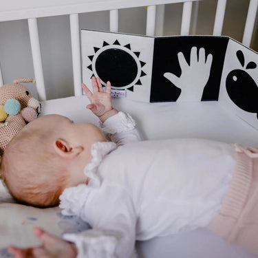 Das Black and White Büchlein ist ein einzigartiges Baby-Spielzeug! Kurz nach der Geburt sehen Babys unscharf und können ihre Eindrücke nur zwischen hell und dunkel unterscheiden. Das Schwarz-Weiß Kontrastbuch kann schon ab dem 2. Monat wahrgenommen werden und erste Reize und Stimulation bieten.