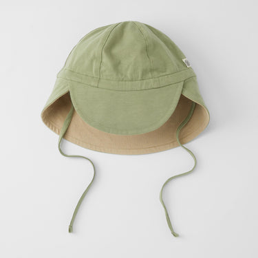 Niedlicher wendbarer Sonnenhut von Cloby. Mit einem geprüften Sonnenschutz von UPF 50+ schütze Augen, Ohren und Nacken. Die Hüte sind wendbar – jede Farbe hat eine Sandy Beach farbige Innenseite – und können auf beiden Seiten getragen werden.