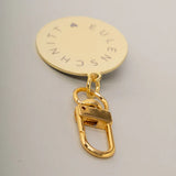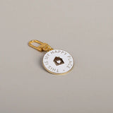 Zeitloses Design von Eulenschnitt. Wunderschöner Schlüsselanhänger mit entzückendem Schriftzug "My Happy Place". Auf der Rückseite des Schlüsselanhänger ist das Eulenschnitt Logo aufgedruckt.