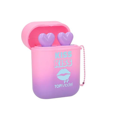 Klingt glänzend: zwei kleine TOPModel-Lipglosse mit Herz-Griff in einer handlichen Verpackung, die aussieht wie ein cooles Kopfhörer-Case. Das pinke Lipgloss duftet nach Blaubeerkuchen, das rote Lipgloss nach Apfel. Das Case hat eine kleine Kugelmetallkette zum Befestigen z. B. an der Jacke oder Tasche.